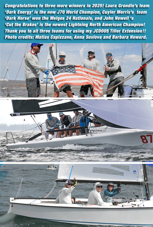 JCD, JCD Custom Race Parts LLC, JCD Tiller Extensions , JCD Carbon Fiber Tiller Extension, JCD Universal, JCD Universal Joint, Sailboat Parts, Sailing Parts, Sailboat Hardware, Sailing Hardware, Tiller Universal Joint, Hiking Sticks, Marine Hardware, Marine Parts, Partner Blocks , Mast Chocks , JCD Bow Doinker , JCD Optimist Tiller Extension, Gianni Cuccio |